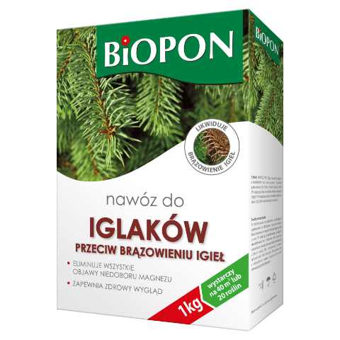 - >Nawóz do iglaków przeciw brązowieniu igieł 1 kg Bopon