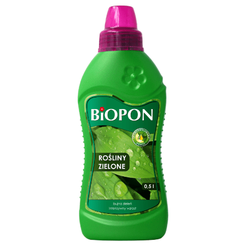 Nawóz do roślin zielonych 0,5 l BIOPON jest polecany do roślin zielonych posiadających okazałe i różnorodnie wybarwione liście o różnych formach. Odpowiednio zbilansowany skład sprawia, że nawóz zapewnia roślinom doskonałą kondycję oraz piękny wygląd. Z kolei specjalnie dobrane składniki mineralne wpływają na intensywny wzrost roślin i soczystą zieleń liści. Nawóz warto stosować regularnie przez cały rok.