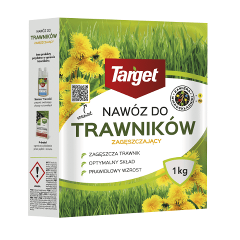Nawóz do traw zagęszczający i wypierający chwasty z mikroskładnikami 1 kg od Target został skomponowany w celu odżywienia i zagęszczenia trawnika, przy jednoczesnej eliminacji chwastów. Nawóz ma postać granulatu i jest bogaty w łatwo przyswajalne składniki pokarmowe oraz mikroskładniki. Dzięki wysokiej zawartości azotu trawnik szybko się zagęszcza i wypiera chwasty. Opakowanie zawiera 1 kg nawozu, którego wydajność wynosi 20 m². Produkt należy stosować co 3 tygodnie przy nawożeniu ręcznym, rozprowadzając 50 g na 1 m².