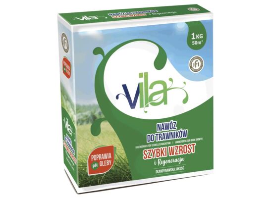 - Działanieod wiosny (po ruszeniu wegetacji) do późnego lata w odstępach około 30-dniowych. Zaleca się naprzemienne nawożenie nawozem wieloskładnikowych Vila Pro Complex, który w swoim składzie zawiera również fosfor i potas, niezbędne do prawidłowego rozwoju systemu korzeniowego i intensywnego krzewienia traw. Dawkowanie: ok. 20g/m2 (2kg/100m2). Zalecaną dawkę rozsiewać równomiernie na suchy trawnik, po czym obficie podlać nawożoną powierzchnię.