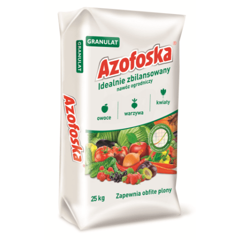Nawóz granulowany worek 25 kg Azofoska to najwyższej jakości preparat dla osób szukających wygodnego i skutecznego sposobu zasilania roślin w ogrodzie. Ten uniwersalny nawóz idealnie nadaje się do dokarmiania warzyw, kwiatów jednorocznych i wieloletnich, jak również drzew oraz krzewów ozdobnych i owocowych. Bogata w mikroelementy kompozycja składników pokarmowych o bardzo wysokiej skuteczności działania jest łatwo przyswajalna przez rośliny, które w efekcie są mniej podatne na choroby i szkodniki. Niska zawartość chlorków w nawozie oznacza mniej chlorków w owocach i warzywach, a co za tym idzie, ich lepsze walory smakowe, dłuższe przechowywanie plonów i wyższą jakość przetworów.