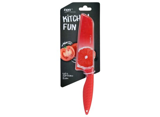 Nóż Santoku KITCHEN FUN 12 cm czerwony