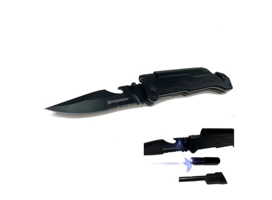 latarka LED, krzesiwo, przecinacz żyłki, otwieracz, wybijak szyb, klips na pasek