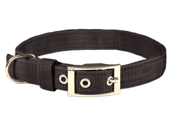 Obroża wykonana jest z podwójnej szerokiej, mocnej taśmy nylonowej.