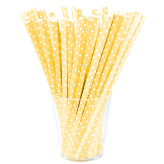 Słomka papierowa żółty w białe kropki 12 sztuk