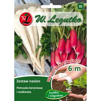 Nasiona na taśmie zestaw: pietruszka korzeniowa Halblange Berlińska i rzodkiewka wielobarwna o zgrubieniach walcowatych W.Legutko