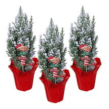 Cyprysik Ellwoodii ze śniegiem w czerwonej folii + pik bałwan 35 x 9 cm