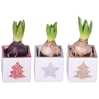 Hiacynt w świątecznej osłonce 15 x 8 cm mix wzorów