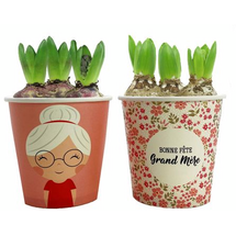 Hiacynt w papierowym kubku Bonne Fête Grand Mère 18 x 12 cm mix