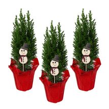 Cyprysik Ellwoodii ze śniegiem w czerwonej folii + pik bałwan 35 x 9 cm