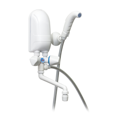 Ten podgrzewacz został wyposażony w zestaw higieniczny składający się z długiego elastycznego węża i końcówki natryskowej. Innowacyjna technologia sprawia, że po naciśnięciu rączki natrysku podgrzana woda zaczyna automatycznie płynąć do przystawki.