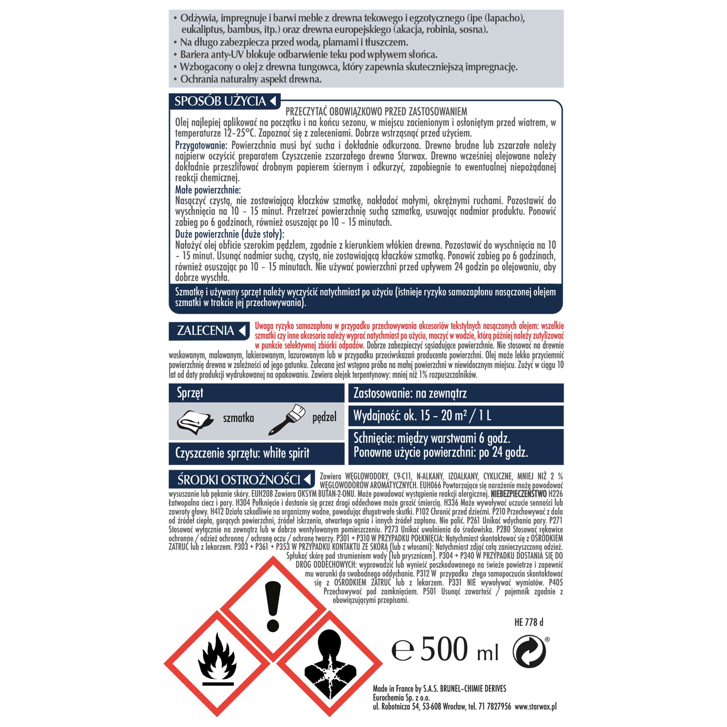 - >Olej ochronny barwiący tek, 500 ml Starwax
