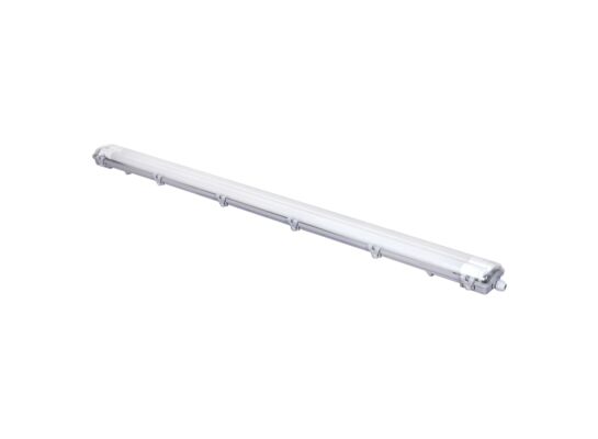 Oprawa hermetyczna ze świetlówkami LED bez odbłyśnika. Moc: 2 x 18 W. Strumień świetlny: 3600 lm. Barwa światła: 6500 K. Zasilanie: AC 230 V - jednostronne. Stopień ochrony: IP65. Wymiary: 1258 x 100 x 52 mm. Materiał: ABS, PC. Kolor: biały. Opakowanie: karton