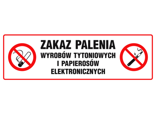 - Oznaczenie "Zakaz palenia wyrobów tytoniowych i papierosów elektronicznych" 10 x 30