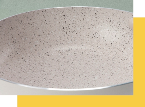 Zainwestuj w wygodę podczas gotowania. Wewnętrzna strona patelni została pokryta specjalną powłoką PTFE z efektem kamienia, dzięki której produkty nie przykleją się do dna. Postaw na sprzęt, który będzie maksymalnie praktyczny w użytkowaniu.