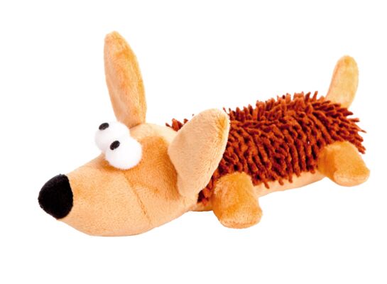 Pies pluszowy (mop), Dingo to urocza maskotka, którą pokocha Twój zwierzak. Jest miękka, a w jej wnętrzu ukryto piszczałkę i szeleszczącą folię, dlatego na pewno zwróci uwagę Twojego pupila i zapewni mu dobrą zabawę. Zabawka ta ma długość 25 cm i jest idealna do tego, aby towarzyszyć Twojemu psu podczas odpoczynku w legowisku oraz w czasie podróży. Tego pluszaka możesz prać w pralce - bez problemu utrzymasz go w czystości.
