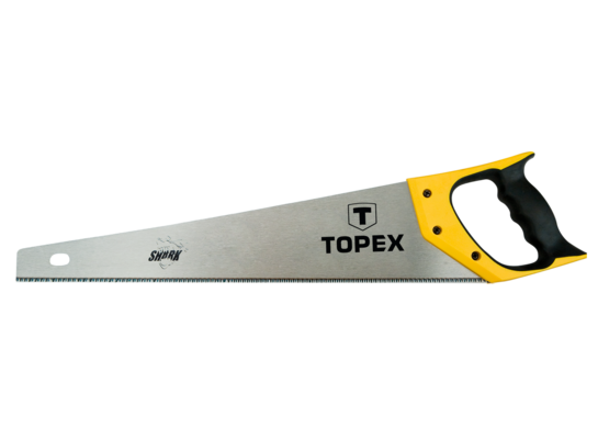Piła płatnica Shark TOPEX (numer referencyjny 10A447) o długości ostrza 450 mm wykonana z hartowanej stali. Trójstronne ostrzenie i hartowanie zębów znacząco obniża opory cięcia oraz ułatwia przecinanie drewna wzdłuż słojów. Bardzo wydajne uzębienie aż 11 zębów na cal usprawnia pracę. Ergonomiczny dwumateriałowy uchwyt umożliwia precyzyjne prowadzenie, a powłoka antypoślizgowa sprawia, że nie wyślizguje się z dłoni, zapewniając tym samym wysoki komfort pracy. Marka TOPEX skierowana jest do majsterkowiczów.