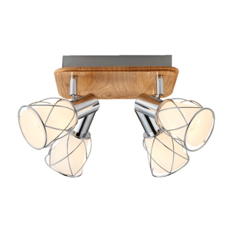 Plafon PADRE 75453 chrom, biały, jasne drewno może znaleźć się w salonie, kuchni, sypialni i przedpokoju - ta niezwykle stylowa lampa doda charakteru i ozdobi każde pomieszczenie. Dzięki połączeniu szkła, drewna i metalu powstało oświetlenie, które zachwyca designem i przykuwa wzrok. Ten model ma aż cztery źródła światła, dlatego rozświetli nawet większe pomieszczenia i zapewni komfort świetlny ich użytkownikom.
