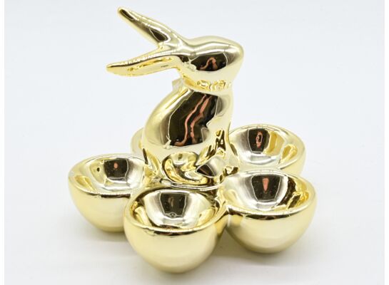 Podstawka na jajka zając 15 x 15 x 13 cm złota