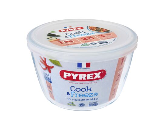 - Pojemnik żaroodporny okrągły z plastikową pokrywką 1,1 l Cook&Freeze PYREX