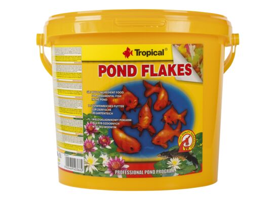 POND FLAKES pokarm płatkowany dla niewielkich ryb ogrodowych. Wieloskładnikowy pokarm płatkowany przeznaczony do codziennego karmienia niewielkich gatunków i młodych osobników ryb hodowanych w ogrodowych oczkach wodnych. Różnorodność wyselekcjonowanych surowców użytych do produkcji płatków zapewnia rybom zdrową dietę, która pokrywa ich zapotrzebowanie na składniki odżywcze. POND FLAKES podawany regularnie utrzymuje ryby w doskonałej kondycji i wpływa na ich równomierny wzrost i rozwój. Pokarm st
