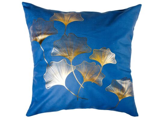 Poszewka Gold Ginkos złote kwiaty 40 x 40 cm niebieski