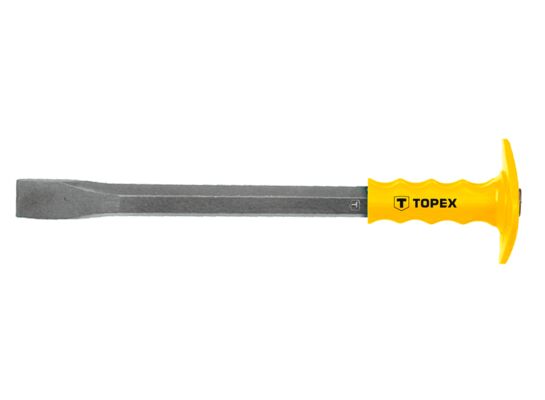Przecinak TOPEX (numer referencyjny 03A149) o długości 400 mm jest przeznaczony do wycinania otworów w ścianach, rozbijania i kruszenia twardych materiałów. Wykonany z wysokiej jakości stali stopowej o dużej wytrzymałości, zakończony płaskim ostrzem. Wyposażony w bardzo dobrze wyprofilowany uchwyt, ułatwiający utrzymanie narzędzia w ręce oraz ochraniacz zabezpieczający dłoń przed uderzeniem. Marka TOPEX skierowana jest do majsterkowiczów.