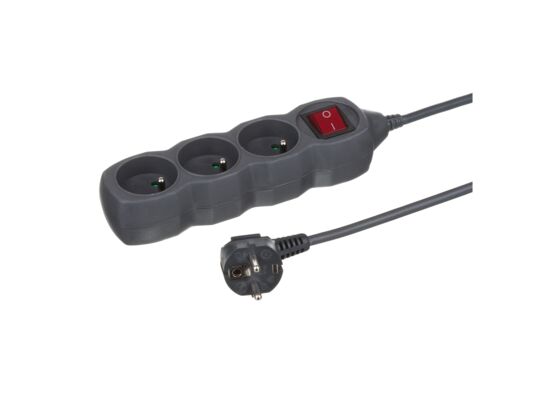 Przedłużacz 3-gniazdowy grafitowy z łącznikiem 1,5 m Duwi