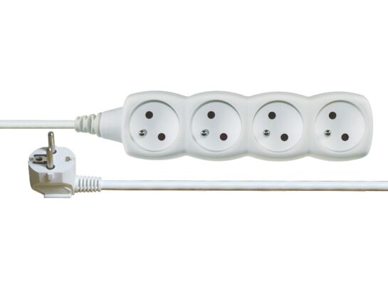 - Informacje dodatkowedługość: 3 m, ilość gniazd: 4 × 2P + PE, napięcie / prąd: 250 V~ / 10 A max., maksymalne obciążenie: 2 300 W, typ izolacji: PVC, kolor: biały, przewód: H05VV-F3G 1 mm², przesłony torów prądowych: tak, materiał gniazda i wtyczki: tworzywo