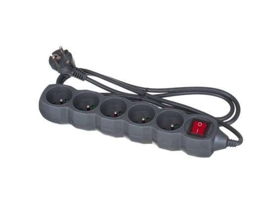 Przedłużacz 5 gniazd 1,5 m z wyłącznikiem czarny