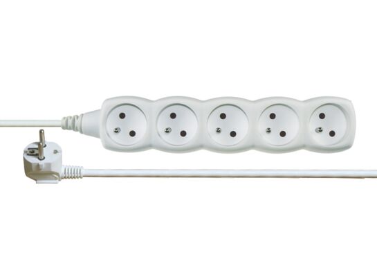- Informacje dodatkowedługość: 10 m, ilość gniazd: 5 × 2P + PE, napięcie / prąd: 250 V~ / 10 A max., maksymalne obciążenie: 2 300 W, typ izolacji: PVC, kolor: biały, przewód: H05VV-F3G 1 mm², przesłony torów prądowych: tak, materiał gniazda i wtyczki: tworzywo