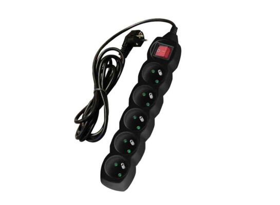 - Przedłużacz 5-gniazd z uziemieniem i wyłącznikiem PP55 1,5 m czarny DPM