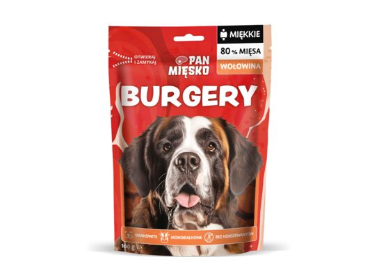 - >Przysmak dla psa Burgery wołowina 100 g Pan Mięsko