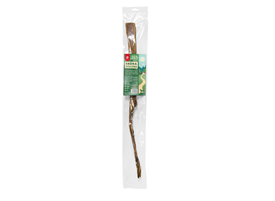 Suszona skóra wołowa jest w 100% naturalna, nie zawiera dodatku sztucznych aromatów, konserwantów i barwników. Naturalne gryzaki są produktami twardymi o wyjątkowym mięsnym aromacie, zapewnią psu zajęcie przez długi czas. Dodatkowo pomagają zachować prawidłową higienę jamy ustnej, dostarczają psu wiele zabawy i zaspokoją naturalną potrzebę gryzienia i żucia.