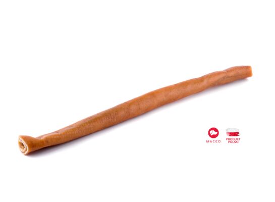 Przysmak dla psa krokiet 48 cm 1 szt. marki Maced to w 100% naturalny gryzak z suszonej skóry wieprzowej. Za jego pomocą zadbasz o prawidłową higienę jamy ustnej, uzupełnisz energię zwierzaka między posiłkami, a także pomożesz mu rozładować emocje. Produkt jest przeznaczony dla małych psów do 5 kg, a ze względu na delikatny zapach może być podawany w pomieszczeniu. Opakowanie zawiera 120 g.