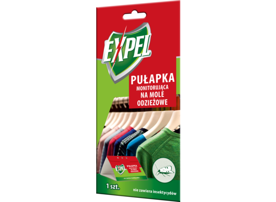 - Stosowaniewyjąć z opakowania, złożyć pułapkę w formie "trójkątnego domku" i zawiesić w szafie