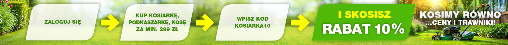 7. Warunkiem skorzystania z promocji jest dokonanie zakupu z zalogowanego konta Produktów Promocyjnych o minimalnej wartości 299,00 zł i użycie kodu rabatowego KOSIARKA10.