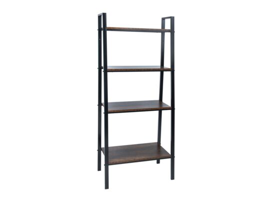 Funkcjonalny regał z czterema półkami z płyty MDF pokrytej piękną okleiną w kolorze palonego drewna. Wykonany został ze stali malowanej na kolor czarny. Będzie idealnym rozwiązaniem do przechowywania i wyeksponowania różnych przedmiotów w łazience, salonie czy każdym innym miejscu w Twoim domu. Ten szeroki regał oferuje dużą pojemność i solidną konstrukcję, gwarantując nie tylko funkcjonalność, ale także estetyczny wygląd. Wymaga samodzielnego skręcenia.