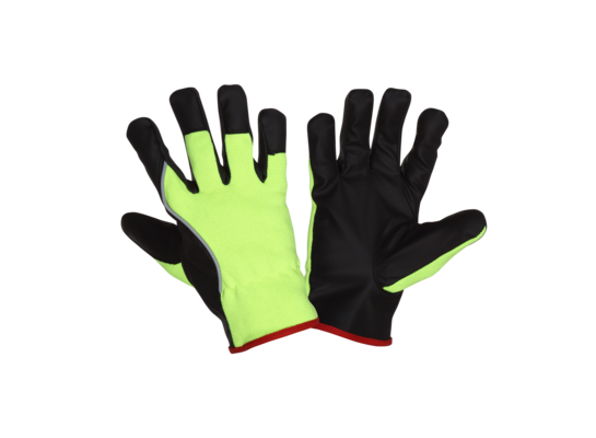 Rękawice ochronne ocieplane Lahti Pro L2507 wykonano z poliuretanu, elastanu oraz poliestru. Wykonanie części chwytnej rękawicy z jednego kawałka skóry zwiększa jej trwałość. Wierzchnia część rękawicy wykonana z elastycznego materiału o podwyższonej widoczności zapewnia idealne dopasowanie do dłoni. Element odblaskowy wzdłuż palca wskazującego podnosi widoczność użytkownika. Podszewka wykonana z polaru chroni użytkownika przed zimnem i podnosi komfort pracy. Ściągacz w nadgarstku zapewnia wysoki