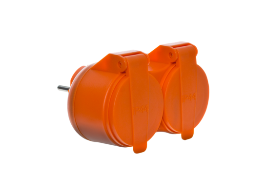 Rozgałęźnik podwójny 2x2P+Z IP44, pomarańczowy