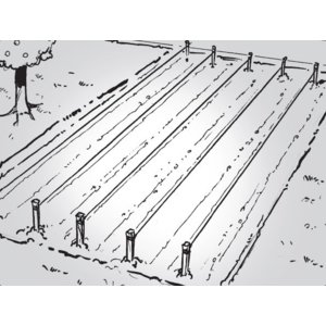 Wysiew do gruntu rozpoczynamy od wytyczenia powierzchni grządek oraz rozplanowania około 40-centymetrowych ścieżek pomiędzy nimi tak, aby mieć dostęp do poszczególnych grządek. Linie grządek wyznaczamy za pomocą sznurka, który rozciągamy na dwóch drewnianych kołkach wbitych w ziemię.