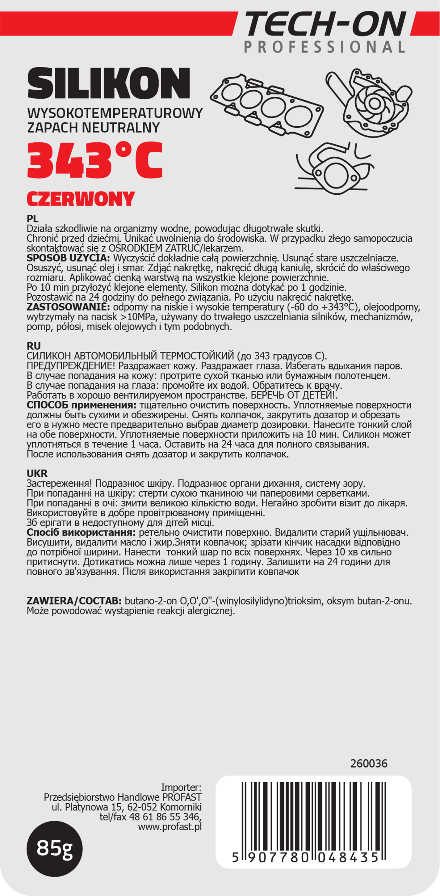 - >Silikon czerwony do 343°C 85g TECH-ON