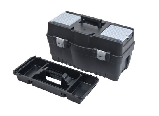 Skrzynka narzędziowa FORMULA A700 to wygodny sposób do przechowywania i transportu narzędzi. Zawiera głęboką tackę z otworami na nasadki oraz bity. Organizację drobnych akcesoriów ułatwią organizery umieszczone w pokrywie skrzyni. Wygodne uchwyty boczne ułatwiają jej przenoszenie.