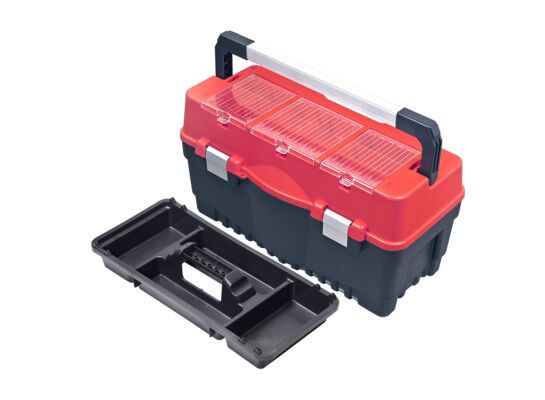 Skrzynka narzędziowa FORMULA S700 Carbo to wygodny sposób do przechowywania i transportu narzędzi. Zawiera głęboką tackę z otworami na nasadki oraz bity. Organizację drobnych akcesoriów ułatwią organizery o przeźroczach z poliwęglanu niezwykle odpornych na wszelkie mechaniczne uszkodzenia, umieszczone w pokrywie skrzyni. Specjalnie zaprojektowana aluminiowa rączka zwiększa wytrzymałość i komfort użytkowania skrzynki narzędziowej. Aluminiowe zapięcia skutecznie chronią zawartość skrzynki narzędzi