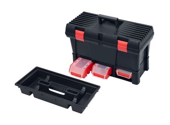 Nowoczesny design i solidne wykonanie to bez wątpienia cechy skrzynek narzędziowych z linii Stuff. Organizację pracy ułatwi Ci wygodna tacka z miejscem na nasadki i bity. Wygodna rączka oraz funkcjonalne uchwyty boczne zapewniają komfort użytkowania. Najdrobniejsze elementy Twojego warsztatu znajdą miejsce w organizerach Stuff umieszczonych w pokrywie. Specjalnie zaprojektowane aluminiowe zapięcia Stuff skutecznie zabezpieczają zawartość skrzyni. Wielofunkcyjne pojemniki Ergobox 2 Plus w połącze