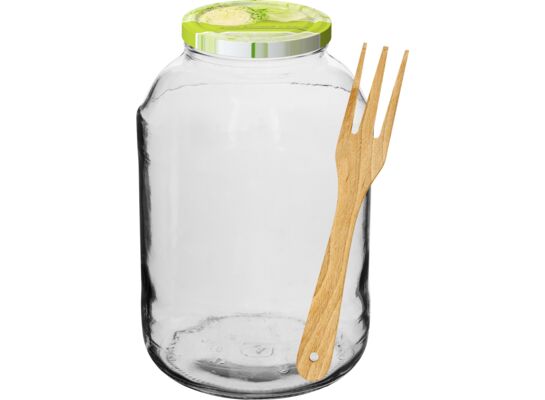 - Słoik 4 l z kolorową zakrętką Ø100 z widelcem lub szczypcami