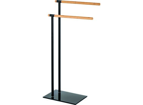 Funkcjonalny wolnostojący stojak na ręczniki, którego ramiona na różnych poziomach sprzyjają szybszemu wysychaniu ręczników. Nowoczesny charakter podkreśla prosta forma i czarne aksamitne wykończenie.