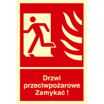 Oznaczenie "Drzwi przeciwpożarowe. Zamykać! Kierunek drogi ewakuacyjnej w prawo" 15 x 22,2