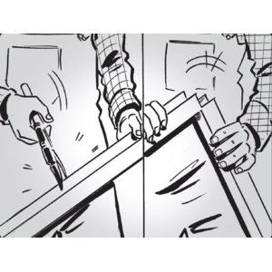 Wzdłużne krawędzie płyt gipsowo-kartonowych są fabrycznie przystosowane do łączenia. Poprzeczne musimy sfazować – nożem lub strugiem kątowym ściąć je ukośnie pod kątem około 30° do 2/3 grubości. Na styku dwóch takich krawędzi powstaje bruzda o przekroju trójkątnym. Umieszczamy materiał izolacyjny między elementami rusztu i montujemy płyty po jego drugiej stronie, przesuwając poszczególne płyty względem siebie o pół szerokości.