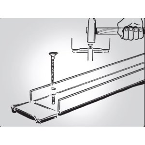 Do łączenia profili używamy kołków rozporowych, tzw. do szybkiego montażu. Otwory na nie wiercimy w podłożu przez profil, a kołki wbijamy młotkiem.